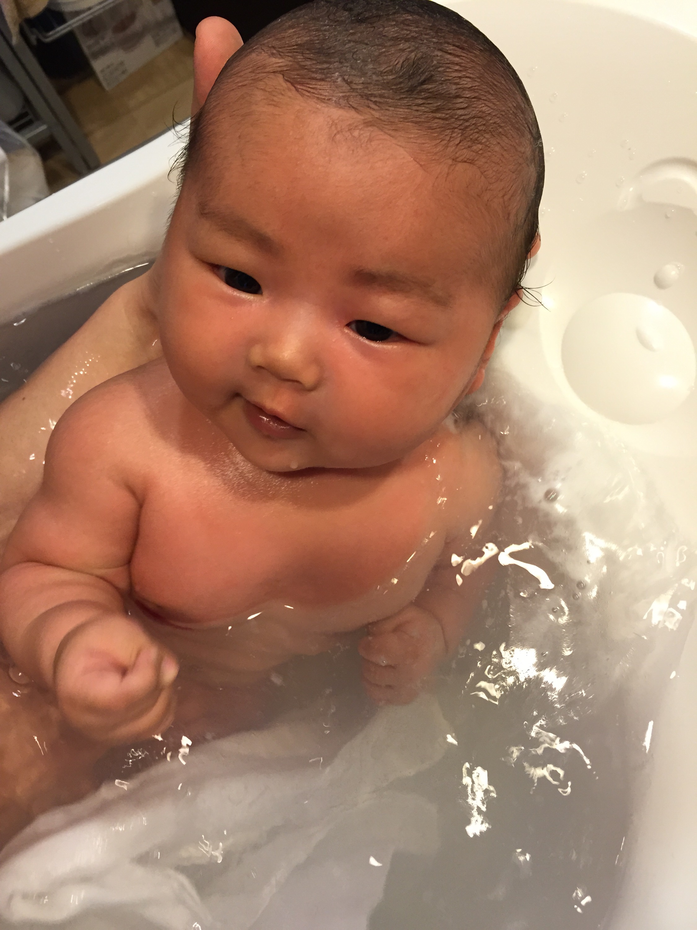 You’ve been smiling a lot more and playing with your hands heaps. I think it’s only a matter of time til you recognise that they are actually part of your body! I think I should get you a toy so that you can hold onto it.