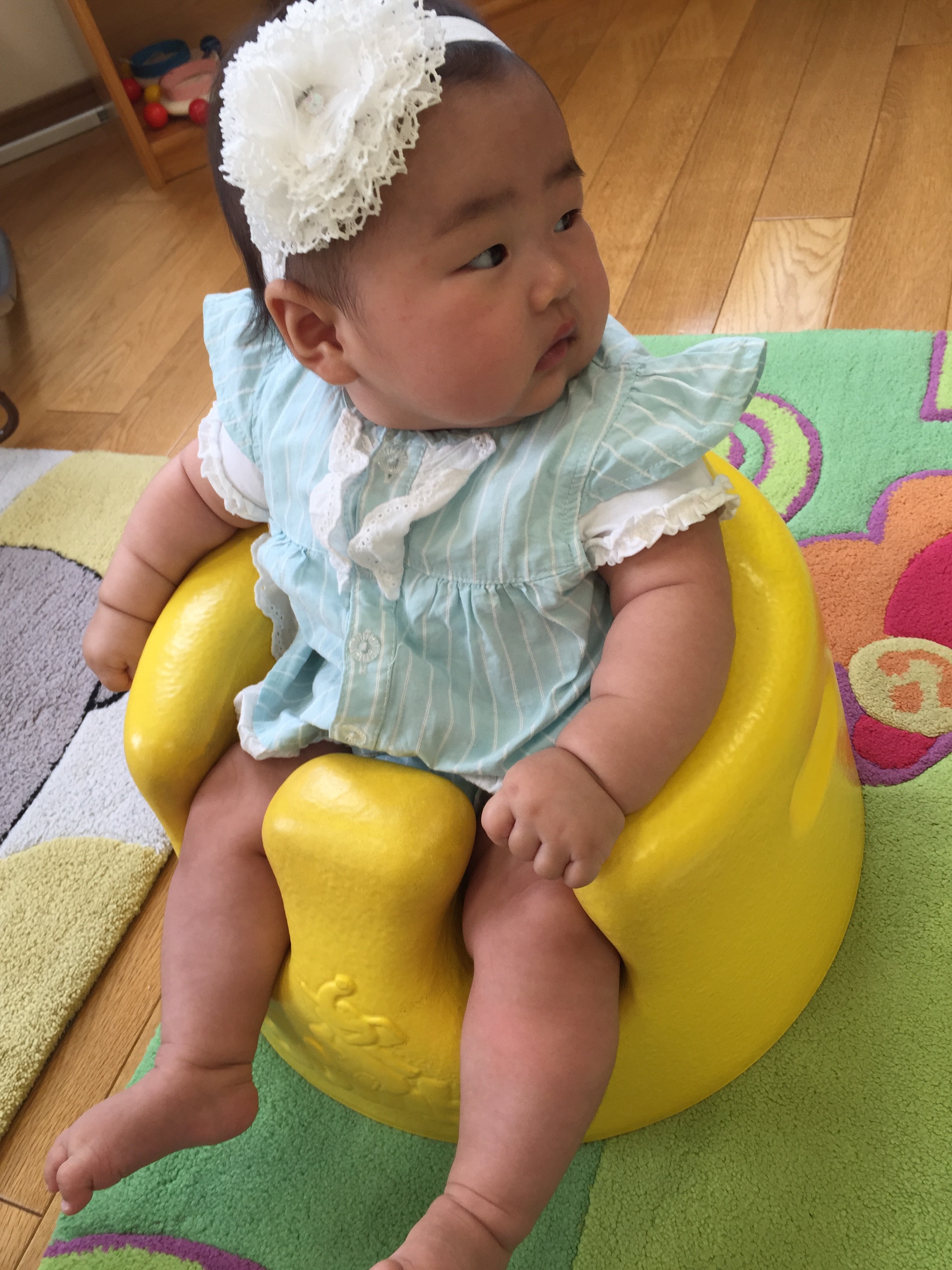 You sat in Bumbo for the first time and you did well! We saw a friend from the yoga class and said hi. I felt terrible that I completely forgot their names…