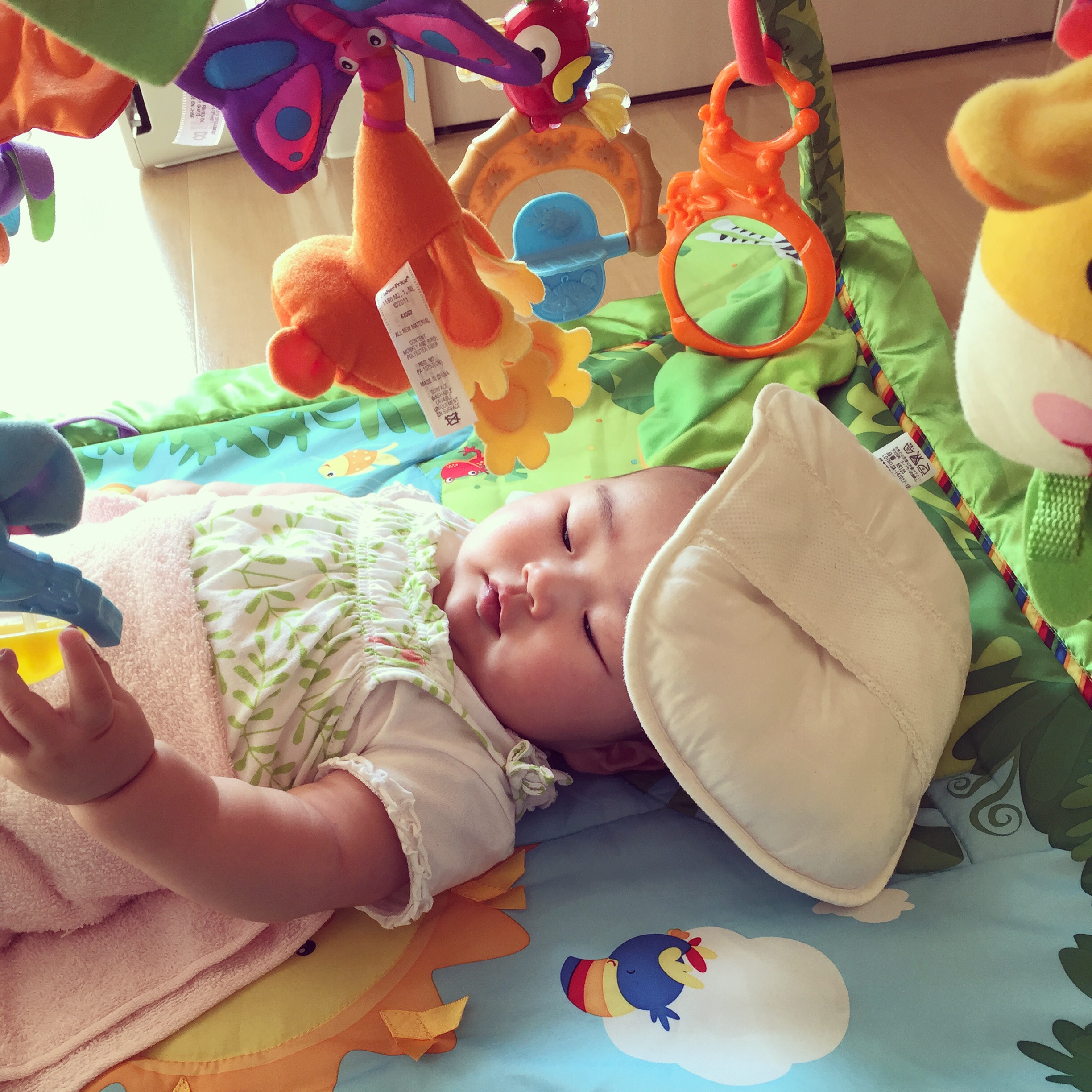 You’ve been playing with more toys hanging on your PlayGym and you can almost touch your feet!